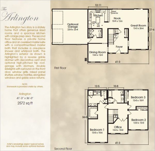 The Arlington two story is a stately home that offers generous sized rooms and a spacious kitchen with a large prep area. The second floor features a private home office and an oversized master suite with a compartmentized master bath that includes a one-piece shower and whirlpool bath.