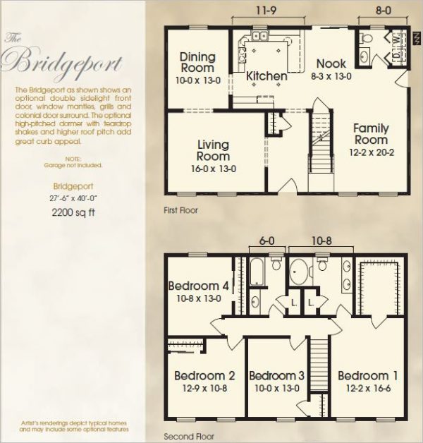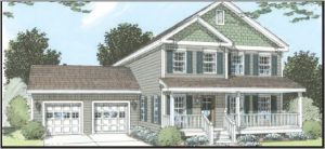 The Bridgeport as shown shows an optional double sidelight front door, window mantles, grills and colonial door surround. The optional high-pitched dormer with teardrop shakes and higher roof pitch add great curb appeal.